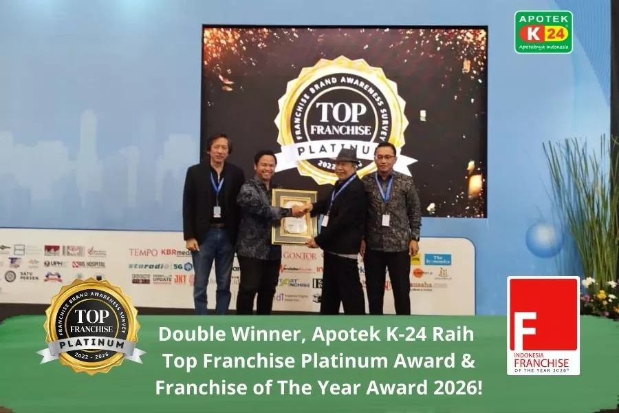 Mengawali tahun 2026 dengan prestasi gemilang, Apotek K-24 mendapatkan Top Franchise Platinum Award 2026 dan Franchise of The Year Award 2026. Penghargaan ini menjadi kado spesial sekaligus pengakuan atas dedikasi Apotek K-24 dalam menjaga kualitas layanan dan inovasi bisnis selama lebih dari dua dekade.