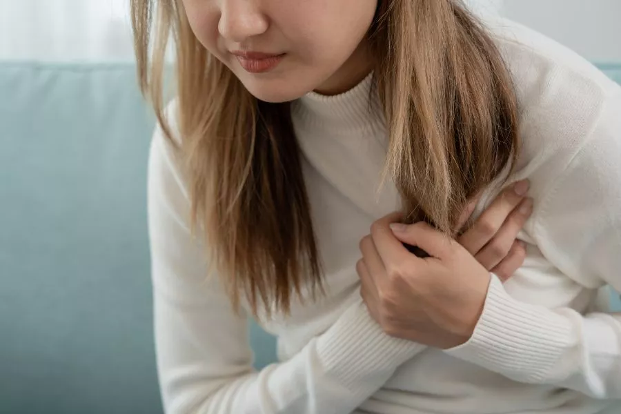 Gejala sakit jantung yang lainnya adalah munculnya sesak napas. Keadaan ini akan terjadi karena jantung yang berdebar-debar cukup lama. Saat jantung berdebar-debar, maka aliran darah juga akan bergerak semakin cepat. Akibatnya, tubuh memerlukan oksigen yang banyak juga untuk dialirkan ke seluruh tubuh. Nah, menghirup oksigen dengan cepat ini bisa menyebabkan sesak napas, lho.